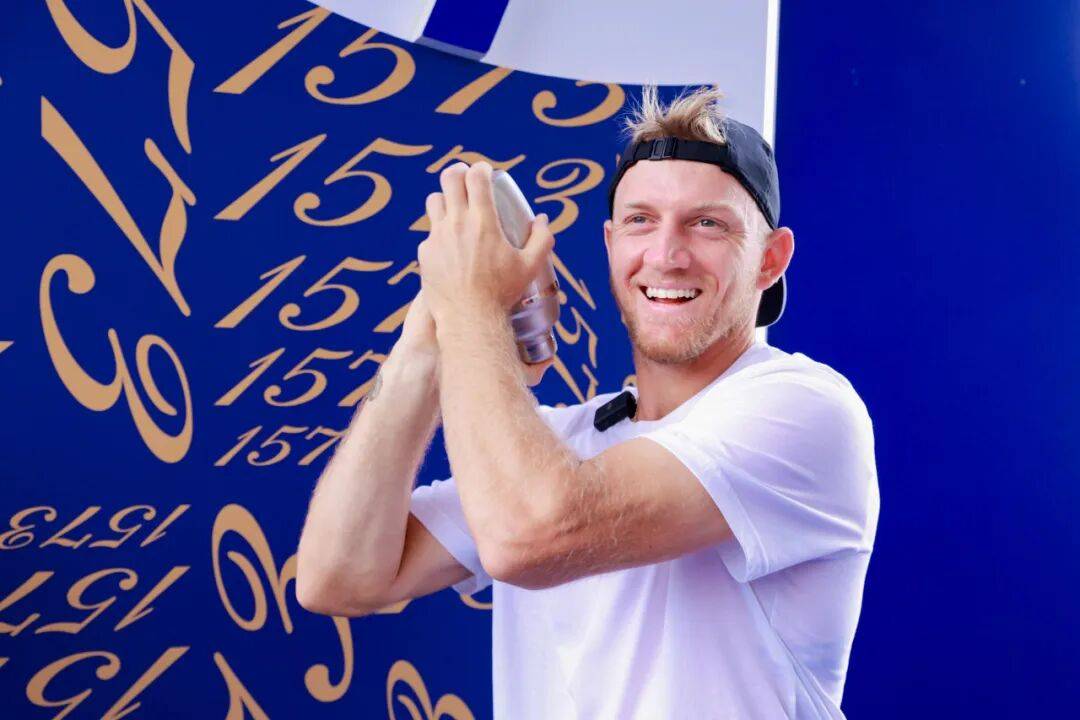 赛事期间,国窖1573还邀请世界各地的选手,来体验区感受白酒文化的底蕴,体验中国式待客之道与中国文化魅力。西班牙网球名将福基纳到“胜利之杯”吧台喝了一杯特调。调酒师幽默诠释1573谐音“一路提升”。