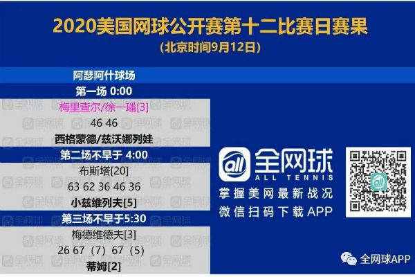 北京时间9月12日,2020美国网球公开赛第十二个比赛日的争夺落下帷幕。
