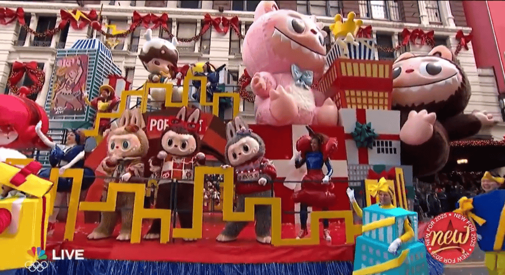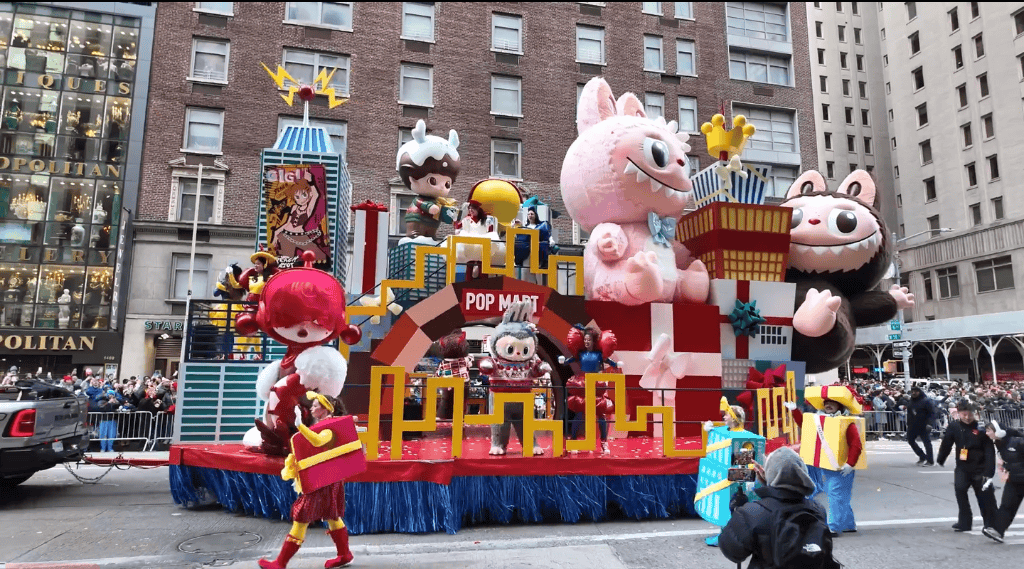 在今年的梅西感恩节大中,泡泡玛特与梅西百货工作室合作推出了名为“Friendsgiving in Pop City”的主题花车。