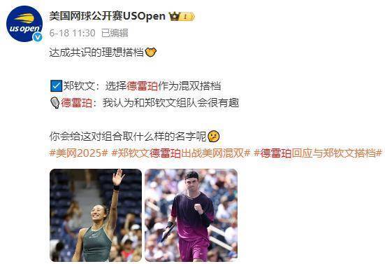今年6月,美网官宣德雷珀与郑钦文将组队出战2025美网混双后,一度引发球迷们的高度期待,由于两人都有多项时尚代言,被粉丝们称为“超模组合”。
